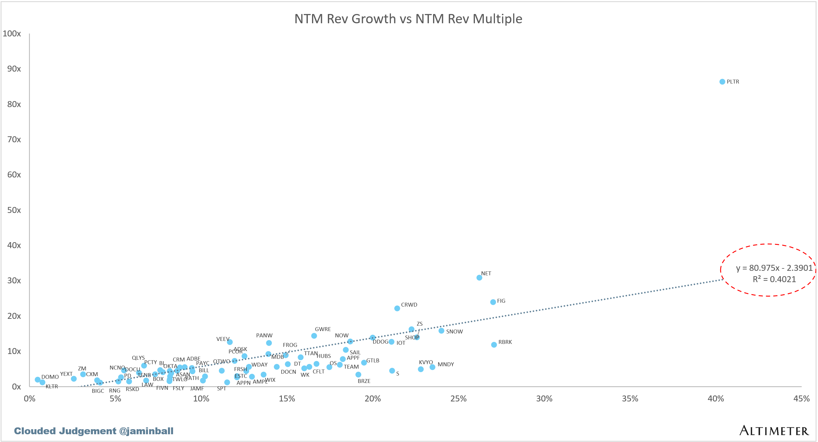 Scatter Plot of EV / NTM Rev Multiple vs NTM Rev Growth