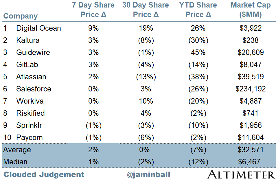 Every week I’ll provide updates on the latest trends in cloud software companies. Follow along to stay up to date!