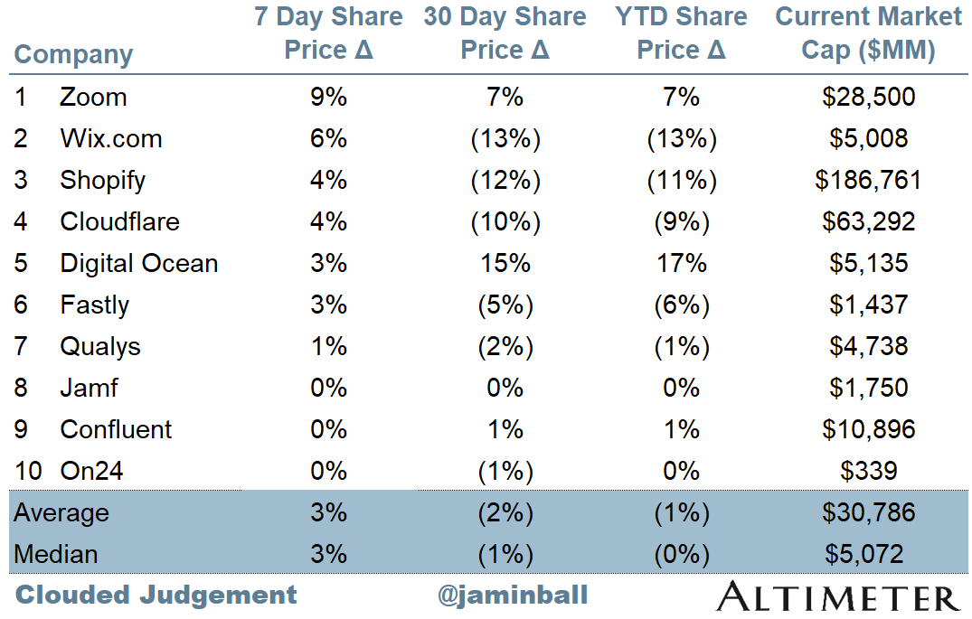 Every week I’ll provide updates on the latest trends in cloud software companies. Follow along to stay up to date!
