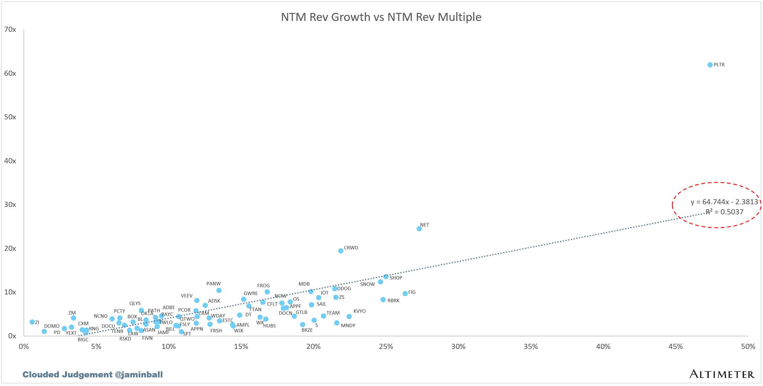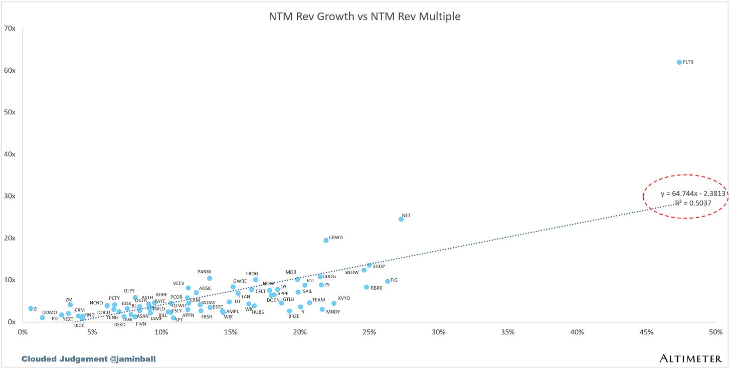 Scatter Plot of EV / NTM Rev Multiple vs NTM Rev Growth