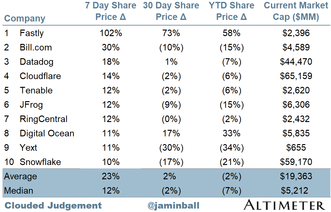 Every week I’ll provide updates on the latest trends in cloud software companies. Follow along to stay up to date!