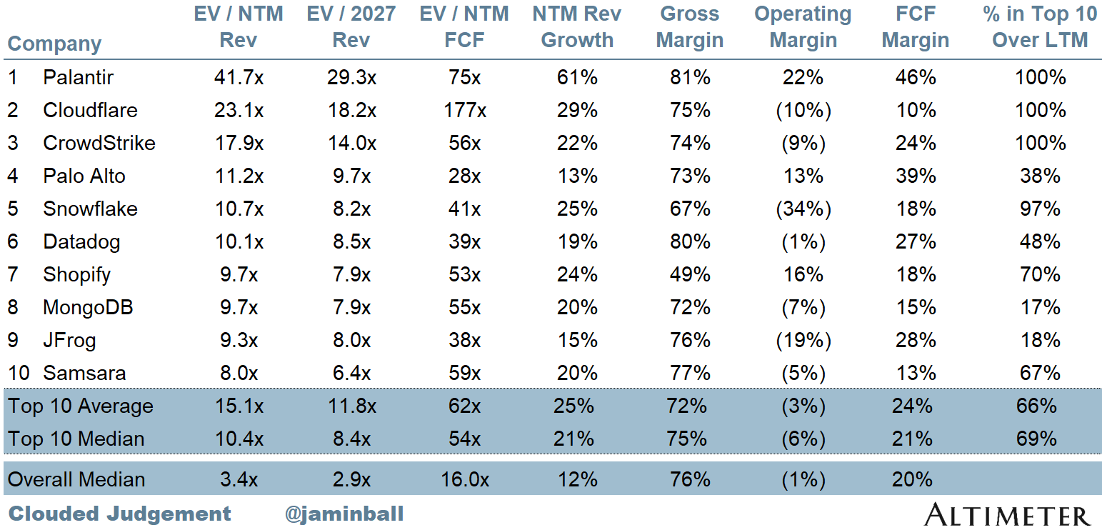 Top 10 EV / NTM Revenue Multiples