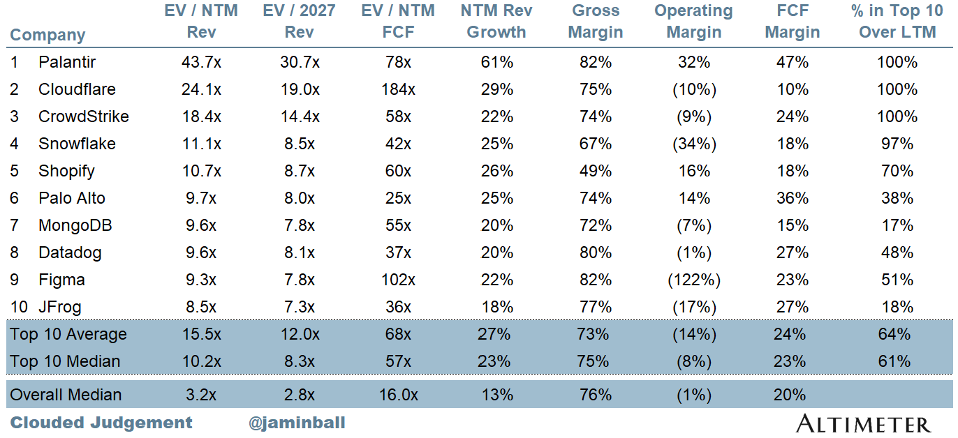 Top 10 EV / NTM Revenue Multiples