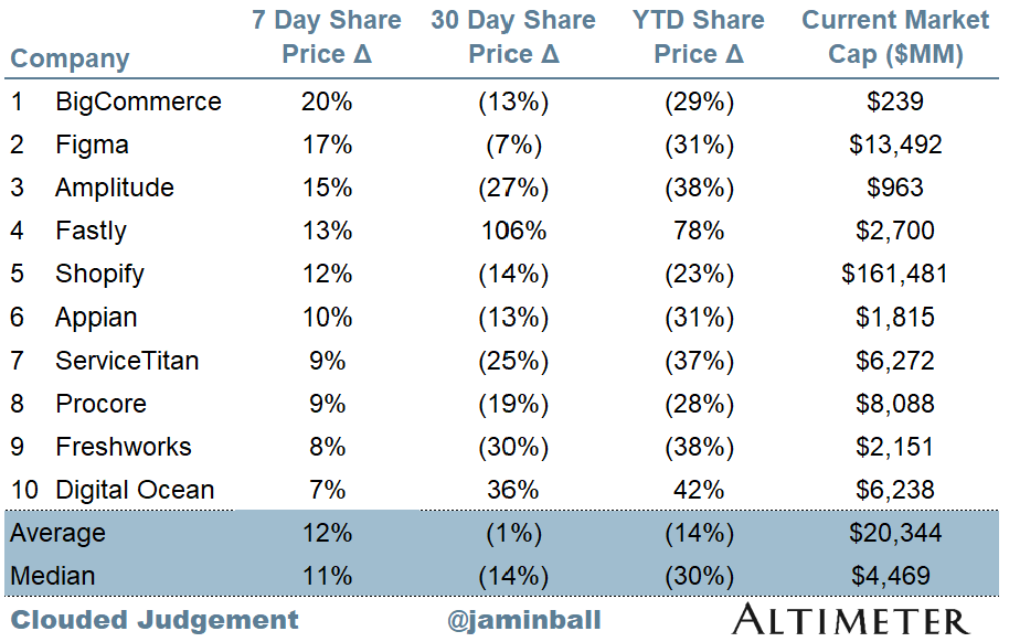 Every week I’ll provide updates on the latest trends in cloud software companies. Follow along to stay up to date!