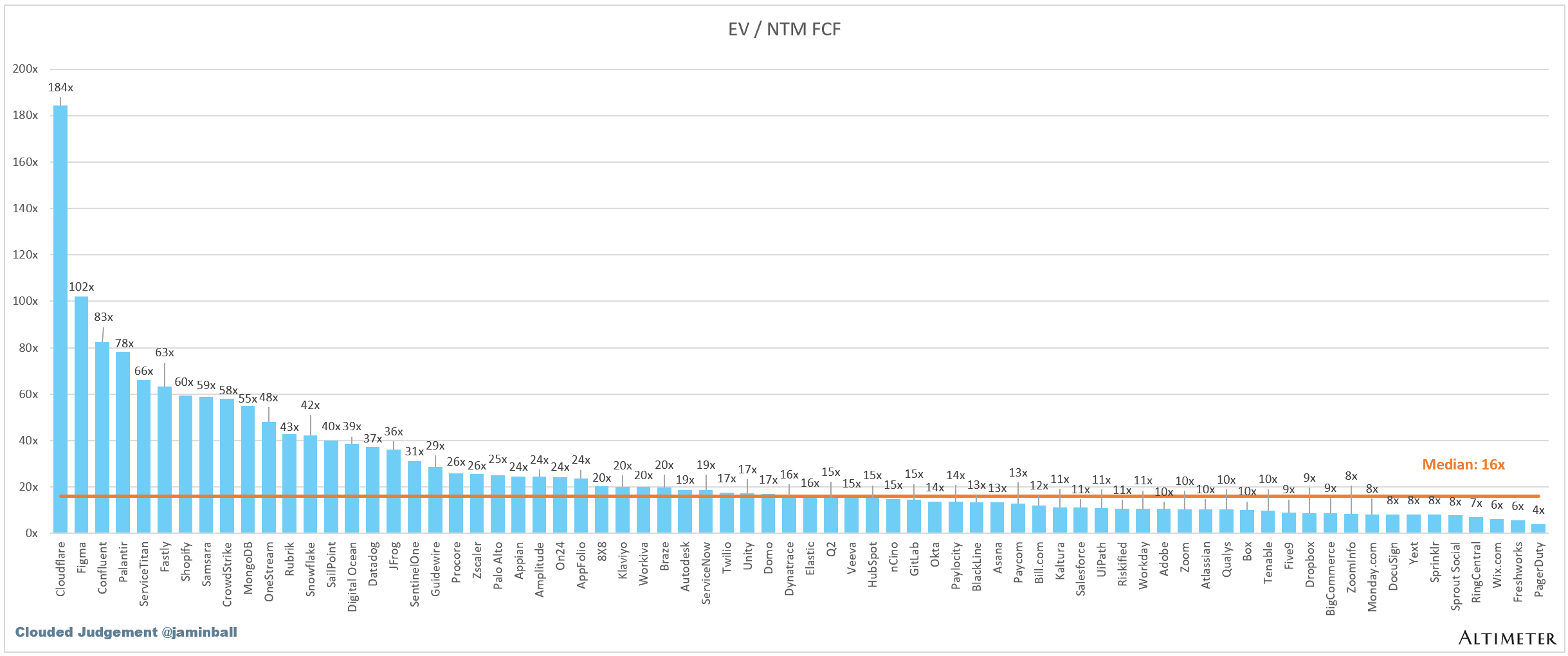 Companies with negative NTM FCF are not listed on the chart