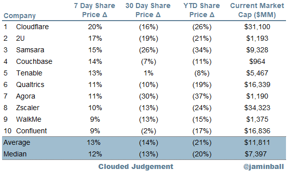 Every week I’ll provide updates on the latest trends in cloud software companies. Follow along to stay up to date!