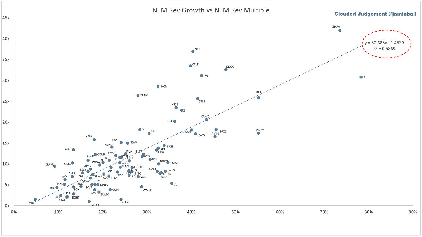 Scatter Plot of EV / NTM Rev Multiple vs NTM Rev Growth