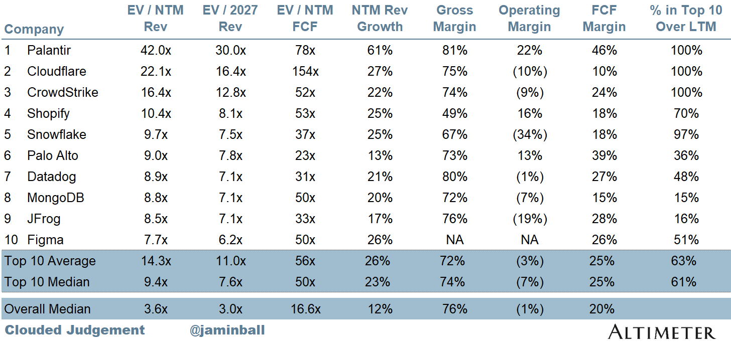 Top 10 EV / NTM Revenue Multiples
