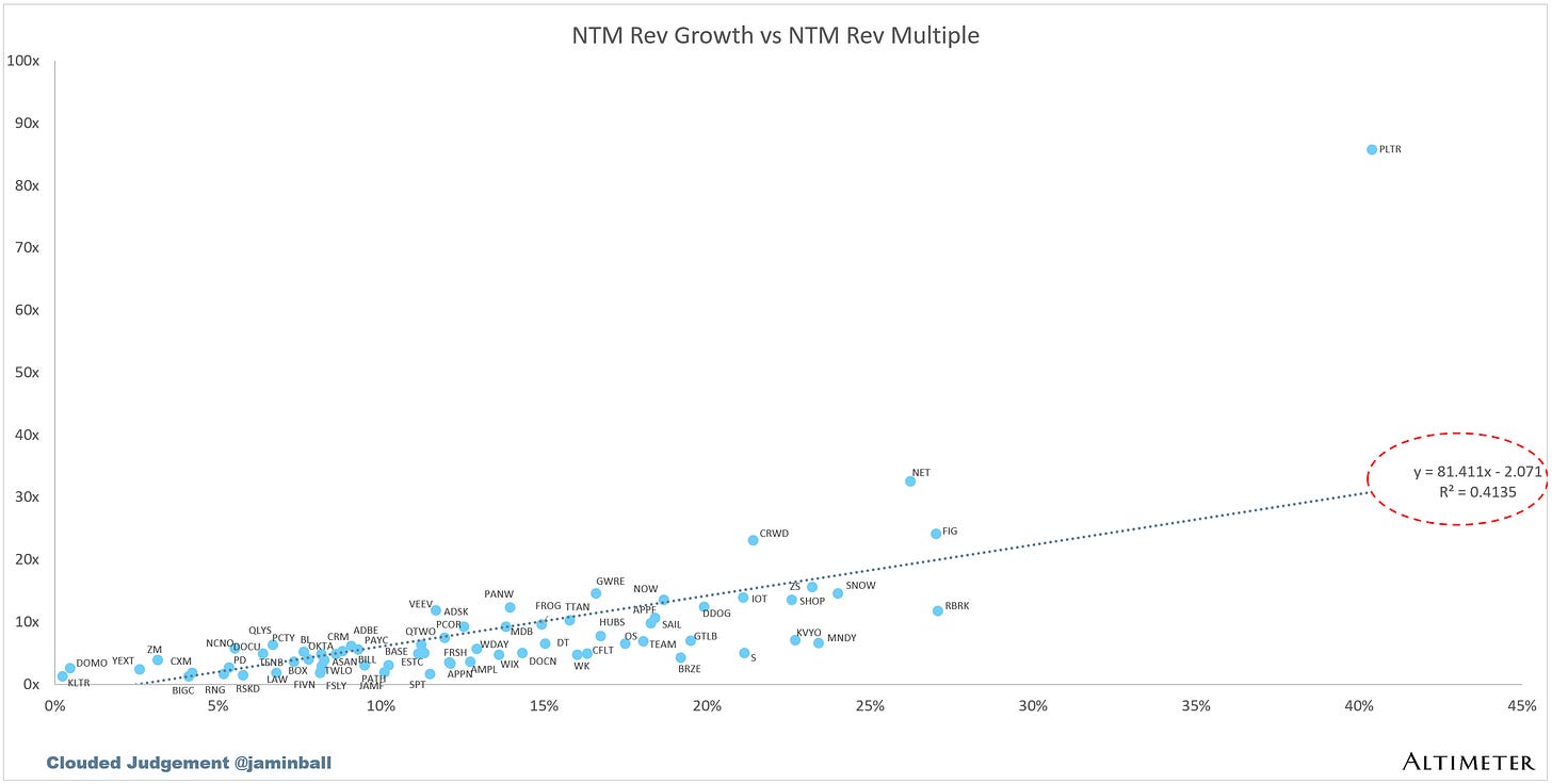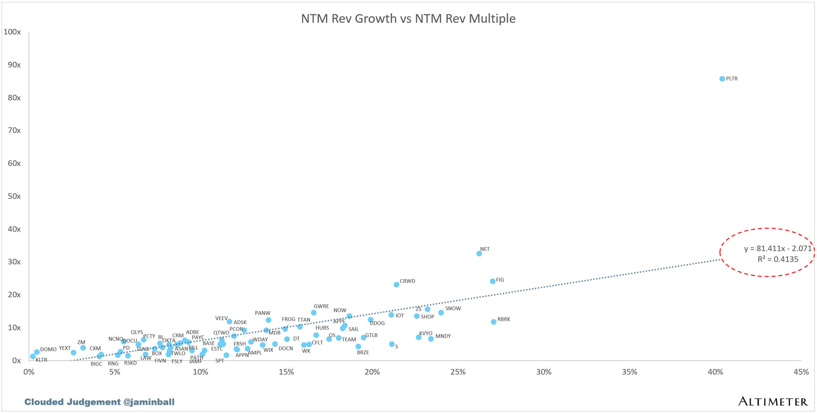 Scatter Plot of EV / NTM Rev Multiple vs NTM Rev Growth