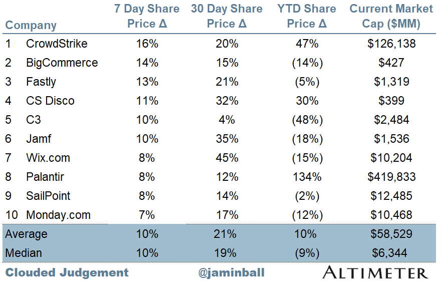 Every week I’ll provide updates on the latest trends in cloud software companies. Follow along to stay up to date!