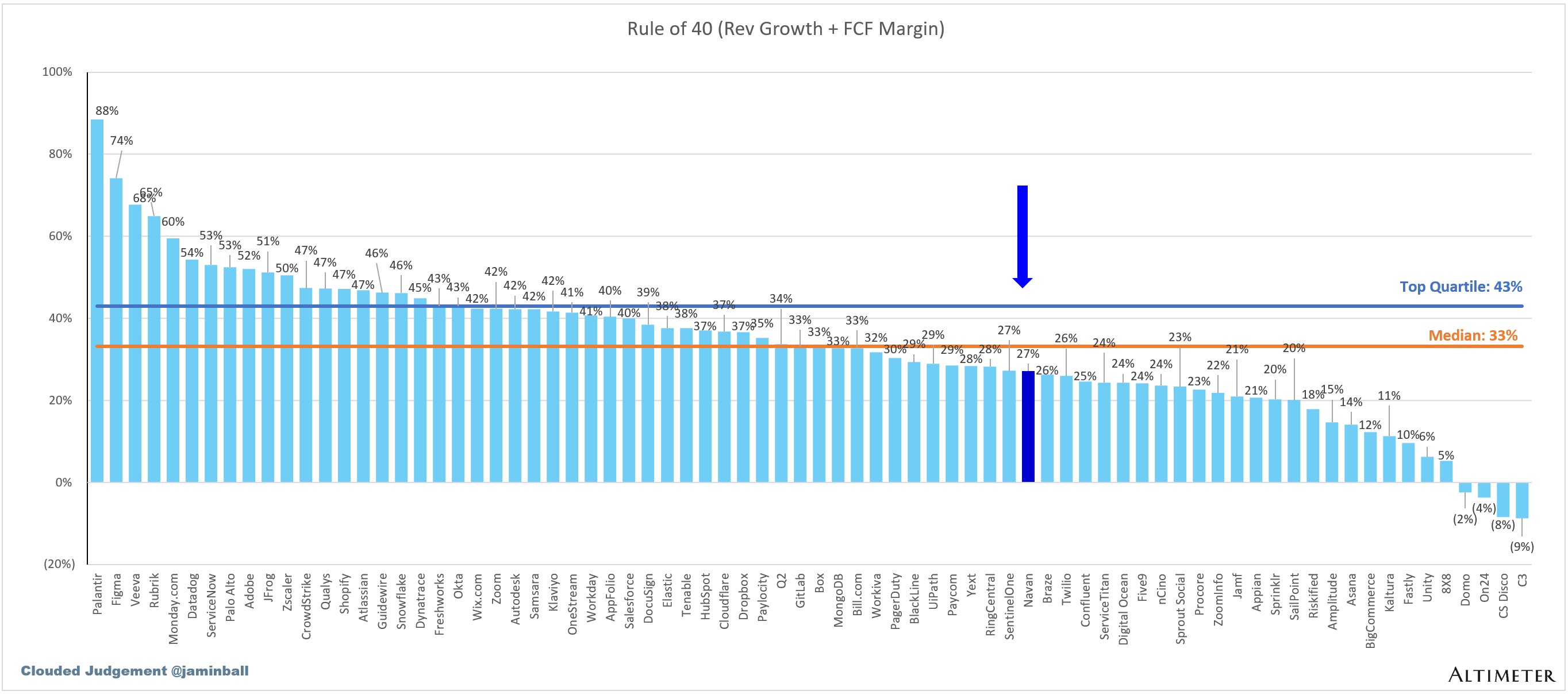 In the below chart I’m showing LTM revenue growth + LTM FCF margin.