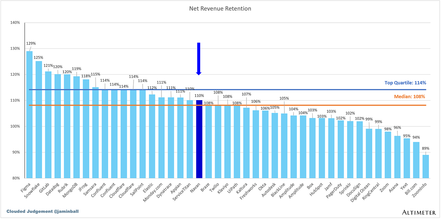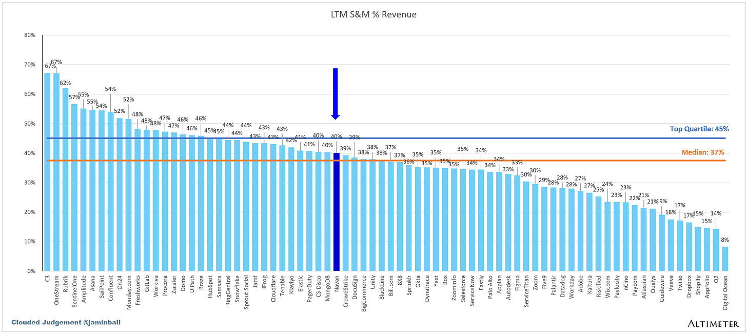 The data shown below depicts how Navan data compares to the operating metrics of current public SaaS businesses.